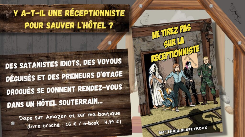 Un hôtel souterrain, une réceptionniste bad-ass et des clients cinglés : voilà, en gros, de quoi parle mon premier roman, Ne tirez pas sur la réceptionniste. Et mes lecteurs, ils en ont pensé quoi ?